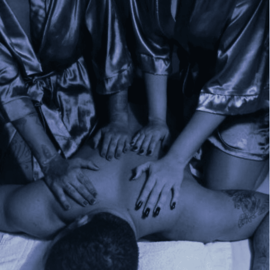 Duas terapeutas atuam em sincronia, envolvendo seu corpo em harmonia perfeita. Uma imersão completa em prazer e relaxamento.